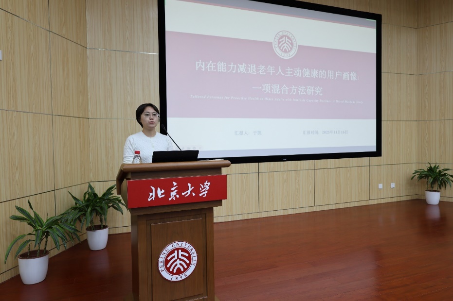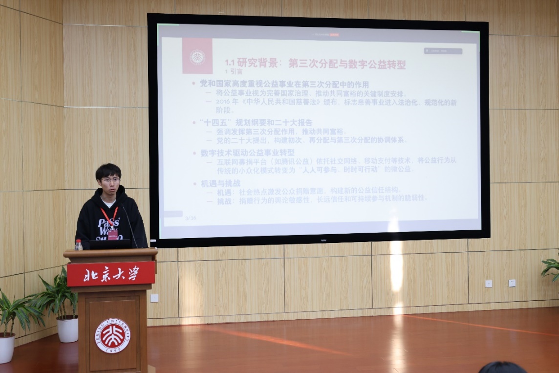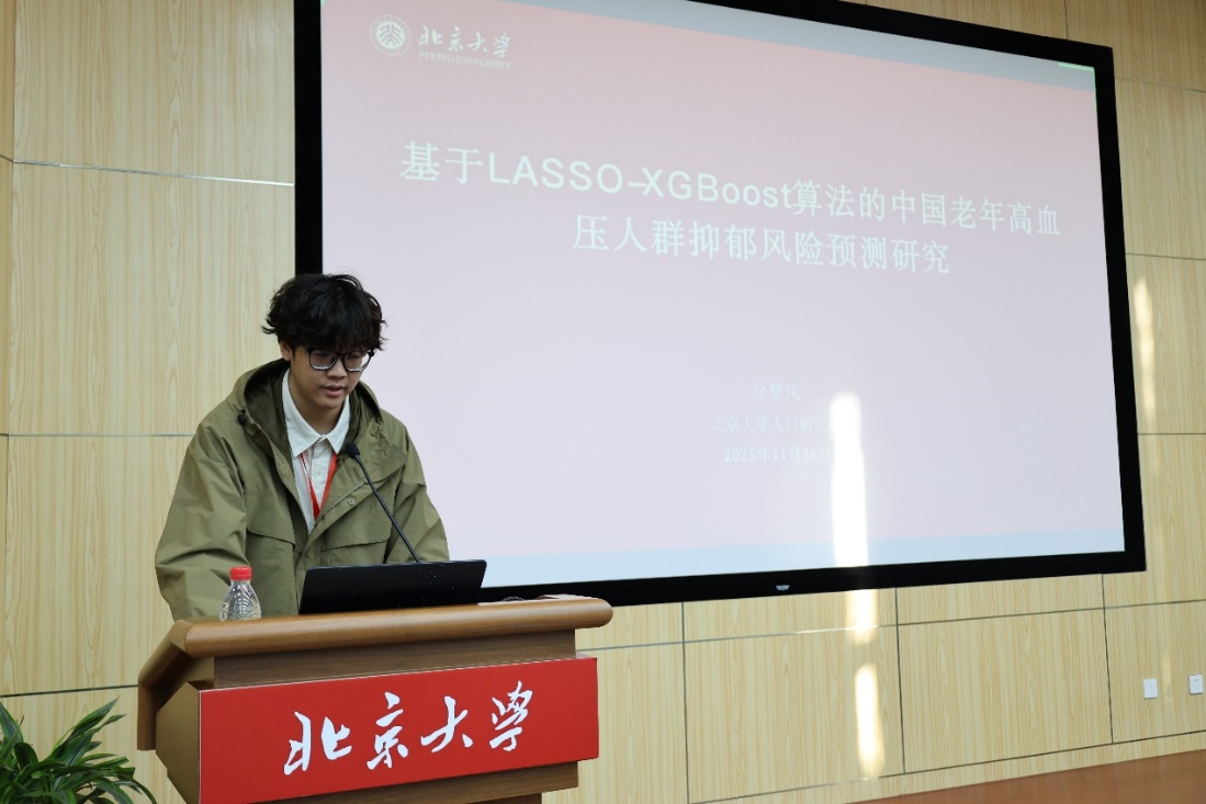 在论文汇报环节,六位分享人分别就自己的论文进行了展示分享。北京大学聂弘宇分享了《短期舆论冲击事件对线上公益捐赠行为的短期效应与启示》,探讨了短期舆论冲击事件对线上微公益捐赠活跃度的影响。北京大学王鑫哲以《AI老龄服务中道德物化对老年主体性的侵蚀与破解路径》为题,聚焦AI技术嵌入老龄服务后与老年主体性的动态博弈,探讨如何在AI老龄服务中实现老年主体性的重塑。北京大学张宇庭介绍了《增能理论视角下退休老教师数字能力提升的个案研究》的成果,发现通过增能理论可以激发退休老教师的能动性,并探讨其数字能力提升的可能路径。北京大学徐楚风以《基于LASSO-XGBoost算法的中国老年高血压人群抑郁风险预测研究》为题,构建了老年高血压患者抑郁风险预测模型。模型使用LASSO回归筛选特征变量,并使用XGBoost模型实现预测,显示出良好的预测性能。南京信息工程大学蒋依然分享了《护航老有所“为”:超龄劳动者“劳动”权益保障实证研究》,发现超龄劳动者面临入职前的信息获取渠道传统化、就业年龄歧视和入职手续不规范等权益问题。北京大学于凯介绍了自己的研究——《From General to Specific: A Mixed-Meth-ods Study Developing Tailored Personas for Proactive Health in Older Adults with Intrinsic Capacity Decline》,通过混合方法识别内在能力减退老年人的主动健康特征,开发了四类用户画像,并针对不同画像提出个性化的干预策略。
