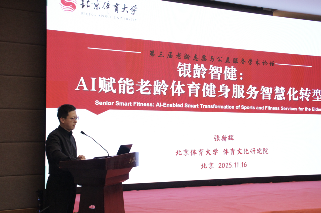 本次论坛中,多位专家从不同领域切入,分享了AI赋能老龄社会治理的前沿研究与实践探索。北京体育大学中国体育战略研究院研究员张新辉以“体卫融合视角下AI赋能老龄体育健身服务智慧化转型”为主题,从现实问题、赋能作用、现存困境与推进之道四个维度展开论述。他指出,AI技术可实现老年体育健身的决策科学化、干预智能化、场景全域化与治理协同化,破解传统服务中供需错配、数字鸿沟等难题,为积极健康老龄化提供实践支撑。